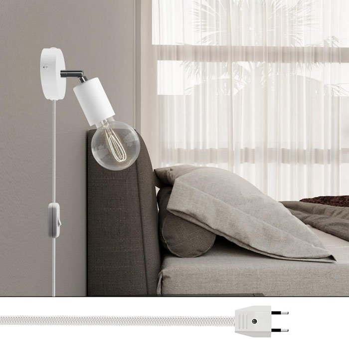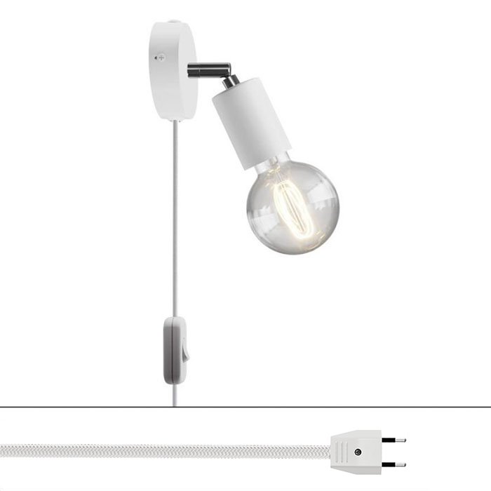 Pre nástennú lampičku s vypínačom a polohovateľným kĺbom je charakteristické kovové spracovanie lampy s päticou pre žiarovku E27, kolískovým vypínačom na kábli a zástrčkou do zásuvky na 230V. Kĺbový mechanizmus umožňuje lampičku nakloniť o 90 ° a otočiť o 315 °. Všetko je navrhnuté a testované talianskymi majstrami svetla.