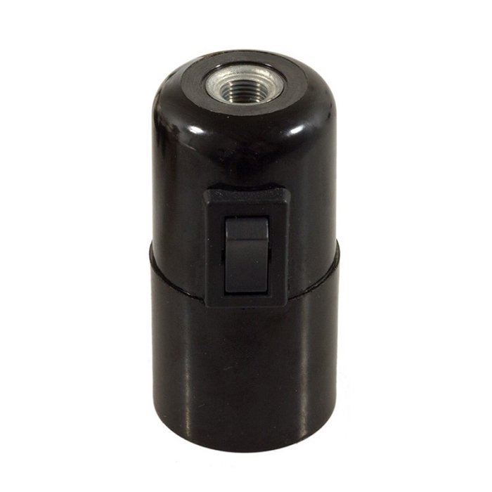 Bakelitová E27 objímka s vypínačom a produktovým označením Bakelika-SW spája odolnosť, ľahkosť a nadčasový retro vzhľad. Poskytuje široké možnosti pri výrobe lustrov a závesných svietidiel. Integrovaný kolískový vypínač v objímke zaisťuje pohodlné ovládanie svetla bez potreby nástenného spínača. Využite bakelitovú objímku s kolískovým vypínačom Bakelika-SW pre E27 žiarovky s veľkým závitom ako funkčné riešenie, kde vynikne samotná žiarovka ako hlavný designový prvok.