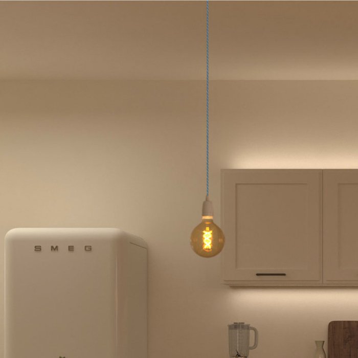 - Textilný kábel 2x 0,75 mm s dĺžkou ≈ 1,2 m - v splietanom prevedení a farebných variantách, ktoré perfektne ladia s ostatnými komponentmi. Dĺžku je možné upraviť jednoduchým skrátením podľa potrieb priestoru.