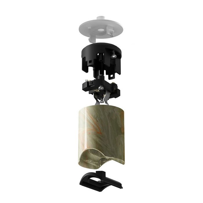 Plastová objímka pre žiarovku S14D s možnosťou montáže tienidla Plastiisa je tvorená niekoľkými precízne spracovanými časťami, ktoré do seba presne zapadajú a vytvárajú kompaktný a funkčný celok. Konštrukčne sa skladá z vonkajšieho krytu (dekoratívneho pláťa) a vlastní funkční objímky určené k uchyteniu žiarovky: