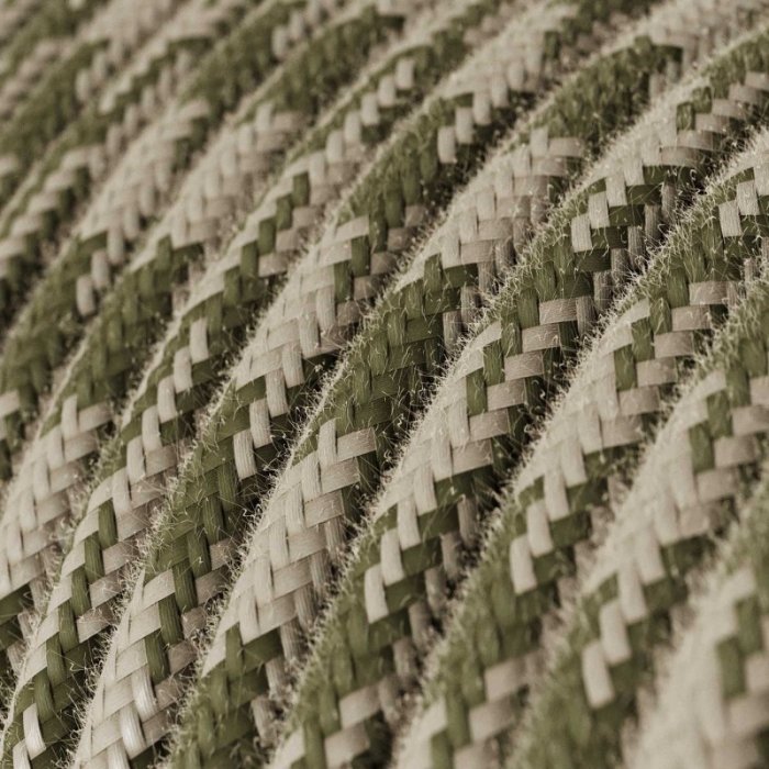 Materiál pre dvojfarebný pletený kábel v dizajne sivej holubice a tymianovo zelenej je bavlna. Bavlnený oplet elektrického kábla sa vyznačuje krásnym matným povrchom a pastelovými farbami. Dvojfarebný dizajn v holubičej sivej a tymianovo zelenej farbe dodáva káblu elegantný vidiecky vzhľad, ktorý dokonale zapadá do prírodných a svetlých farieb dreva. Kábel RP30 osloví všetky tvorivé duše, pretože jednoducho priťahuje pozornosť.