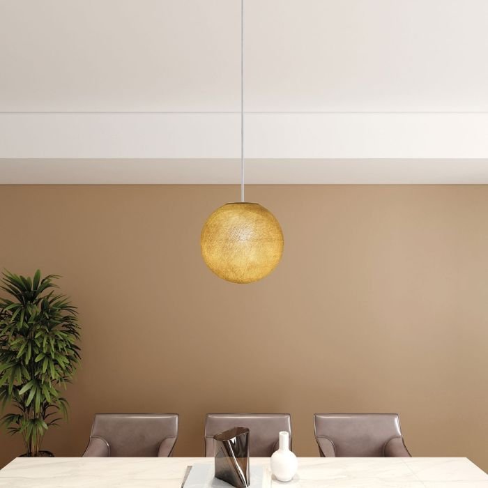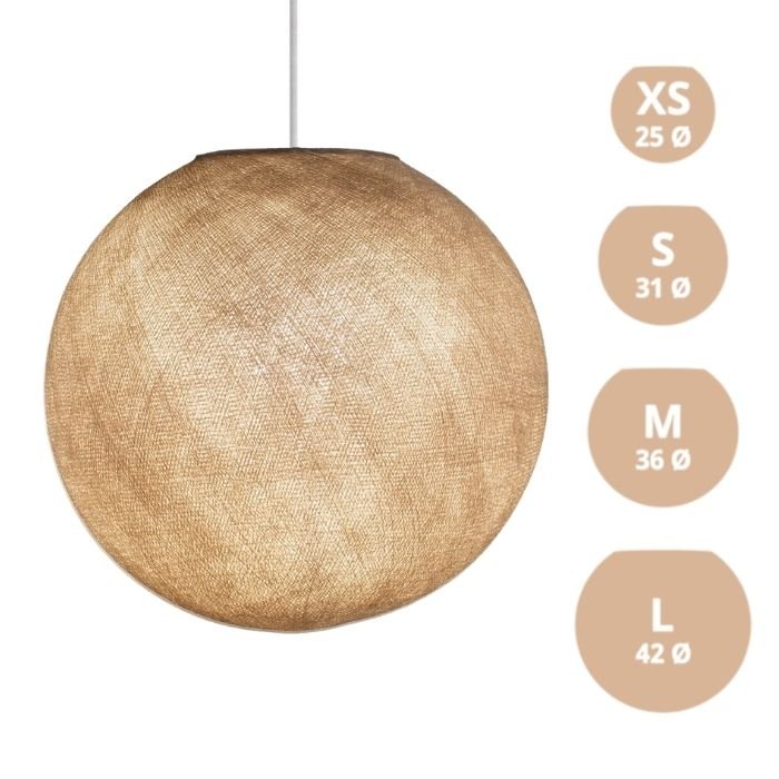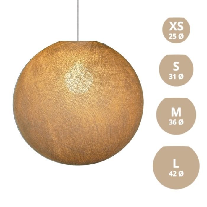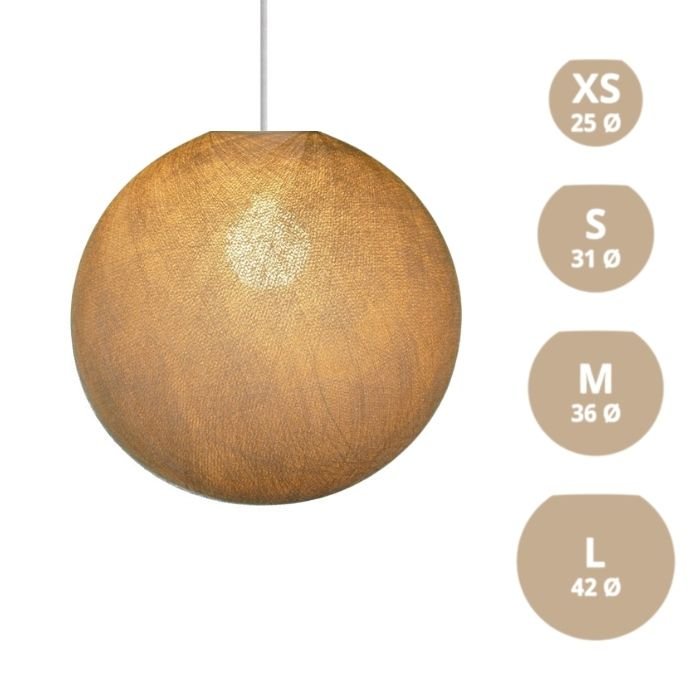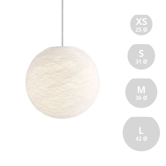 Textilné tienidlo Globe je harmonickou kombináciou moderných materiálov a precízneho tradičného remeselného spracovania. Jeho nadčasový guľový dizajn je k dispozícii v širokej škále farieb a veľkostí (XS, S, M, L), vďaka čomu sa ľahko začlení do rôznych interiérov.