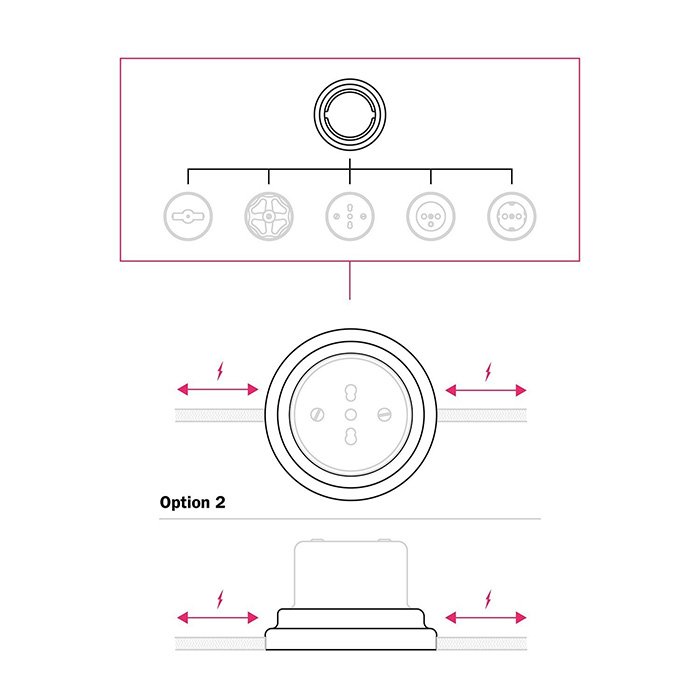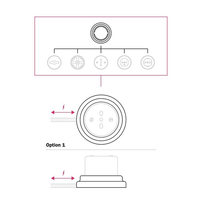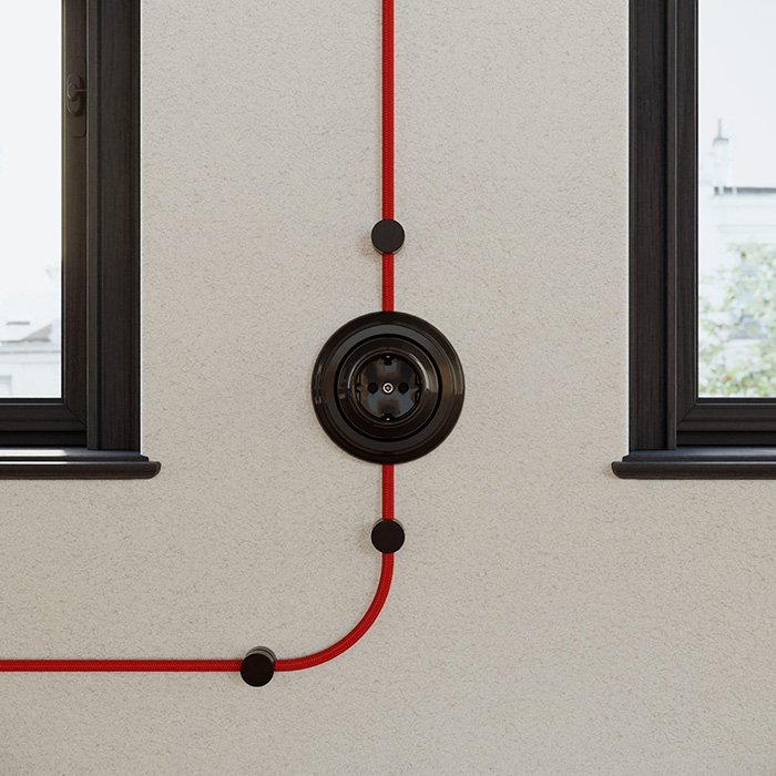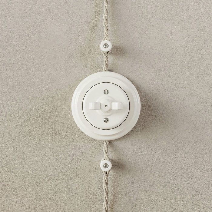 Porcelánová základňa pre elektrickú zásuvku a vypínač/stmívač je elegantným prvkom povrchovej elektroinštalácie. Vyniká originálnym tvarom, vysokou technickou kvalitou spracovania v retro štýle. Porcelánová základňa pre elektrickú zásuvku a vypínač/stmívač je dokonale kompatibilná s našimi textilnými káblami 2x 0,75mm, 3x0,75mm a 3x1,5mm.