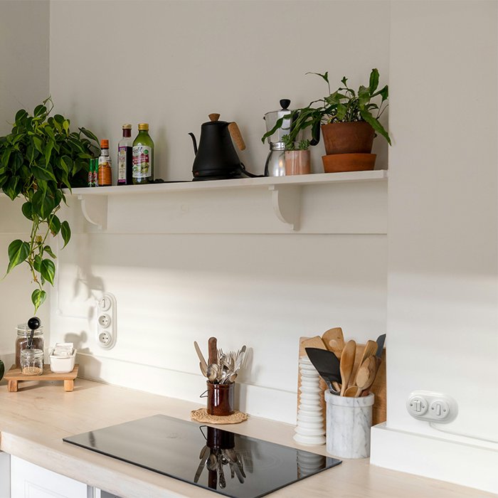 Porcelánový trojrámik 2P-Frame je praktický montážny prvok, ktorý umožňuje pripojenie prívodných káblov z jedného smeru. Vďaka premyslenej konštrukcii umožňuje elegantné vedenie kabeláže, pričom všetky elektrické spoje zostávajú bezpečne a diskrétne ukryté pod rámčekom.