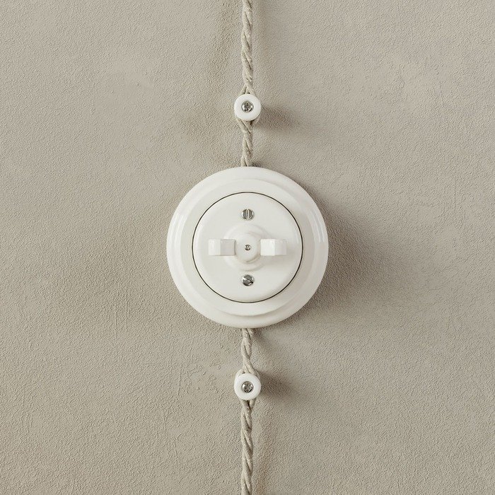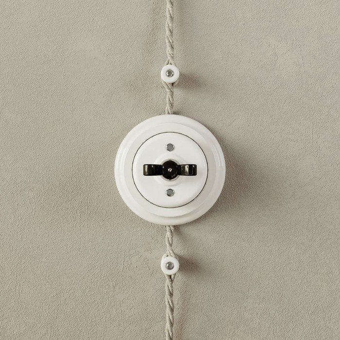 Biely otočný porcelánový vypínač na omietku s označením P-Nut-Base je praktickým a štýlovým riešením na vytvorenie povrchovej elektroinštalácie. Vyniká tradičným remeselným spracovaním s autentickými estetickými prvkami porcelánu a zároveň zodpovedá súčasným štandardom kvality, bezpečnosti a mechanickej odolnosti. Originálne riešený otočný mechanizmus, inšpirovaný retro vzhľadom motýlikovej matice, zaisťuje nielen pohodlné a intuitívne ovládanie svetiel, ale zároveň slúži ako výrazný dizajnový prvok, ktorý zaujme na prvý pohľad v akomkoľvek interiéri.