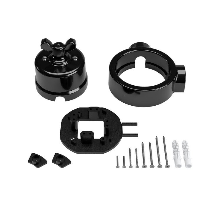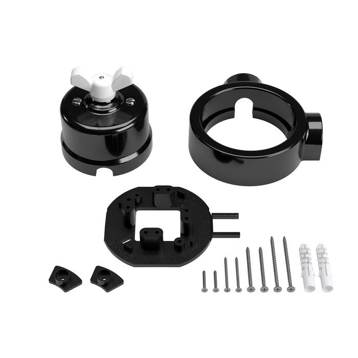 Čierny otočný porcelánový vypínač s rámčekom a označením P-Nut-Base je praktickým a štýlovým riešením pre vytvorenie povrchovej elektroinštalácie systému Creative-Tube. Vyniká tradičným remeselným spracovaním s autentickými estetickými prvkami porcelánu a zároveň zodpovedá súčasným štandardom kvality, bezpečnosti a mechanickej odolnosti. Originálne riešený otočný mechanizmus, inšpirovaný retro vzhľadom motýlikovej matice, zaisťuje nielen pohodlné a intuitívne ovládanie svetiel, ale zároveň slúži ako výrazný dizajnový prvok, ktorý zaujme na prvý pohľad v akomkoľvek interiéri.