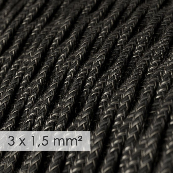 Antracitový krútený ľanový kábel 3x1,5mm Melange TN03 | matný