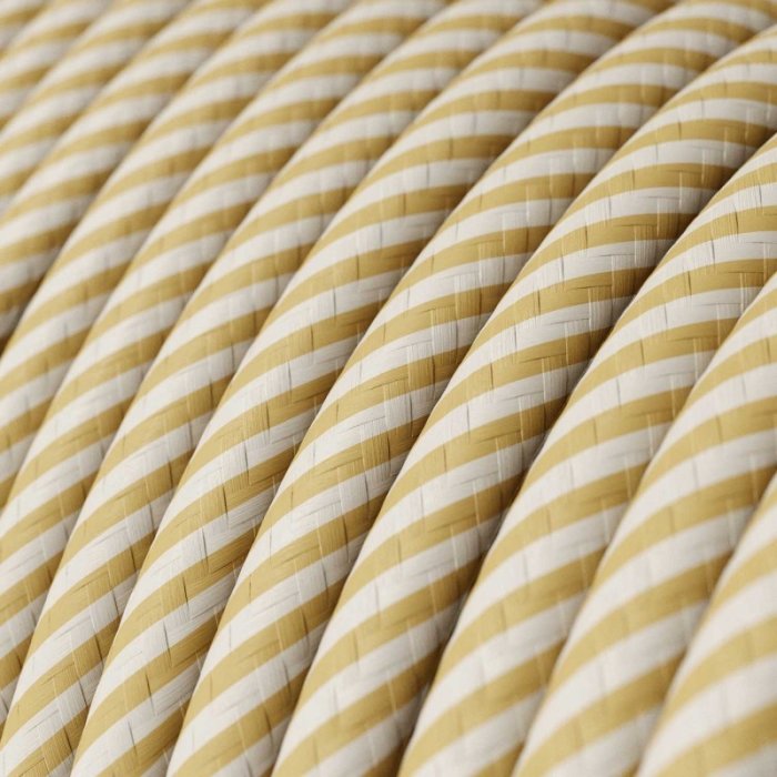 Pruhovaný textilný kábel 2x0,75 mm s produktovým označením Vertigo ERM53 je určený pre pevné inštalácie v elektrických sieťach 230 V. Vhodný je hlavne pre dekoratívne interiérové svietidlá alebo svetelné sústavy, kde vynikne jeho prúžkované farebné prevedenie a precízne zhotovenie a zároveň nie je vyžadovaný ochranný vodič (PE). Vďaka medeným lankovým vodičom v guľatom prevedení, dvojitej PVC izolácii a precíznemu spracovaniu ponúka kábel vysokú mieru bezpečnosti, flexibilitu a nadštandardnú mechanickú odolnosť s nosnosťou káblu pre zavesenie svietidla až 2,25 kg. Dvojfarebný pruhovaný povrch z jemne a husti tkanej High Definition textílie dodáva kabelu mimoriadny vzhľad, vďaka ktorému sa stáva nie len funkčným, ale aj estetickým prvkom interiéru. Využite 2x0,75 mm prúžkovaný textilný kábel ERM53 pre individuálnu či malosériovú výrobu originálnych svietidiel či osvetľovacích sústav s dôrazom na design a detail.