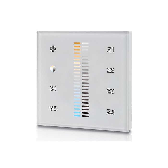 - 1/2 - RF nástenný CCT dotykový panel SR-2830B-AC - slúži ako ovládací prvok a koncové zariadenie na ovládanie pásikov a svietidiel.