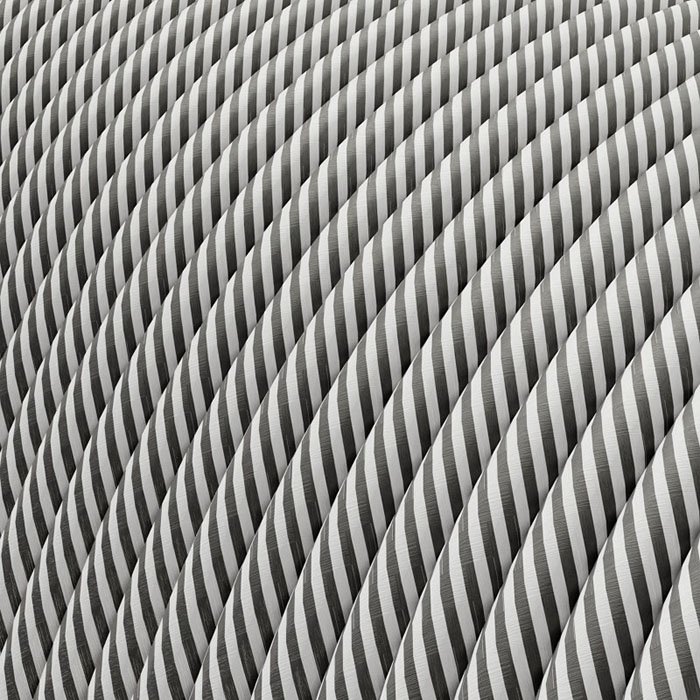Opletený kábel s pruhovaným vzorom v bridlicovo-bielom farebnom prevedení s označením Vertigo ERM37 je výnimočný pre svoje kvalitné spracovanie a použité materiály. Jeho použitie odporúčame pre nízkonapäťové slaboprúdové rozvody do 48V. Elektrický kábel s pruhovaným textilným opletom využijete pri výrobe osvetlenia a svietidiel pre moderné, ale aj retro interiéry. Práve náš elektrický slaboprúdový bridlicovo-biely Vertigo opletený kábel môže byť pomyselnou "čerešničkou na torte" pri výrobe svietidiel, ktoré sú osadené LED pásikmi pre nízke jednosmerné napätie 12V alebo 24V. V týchto inštaláciách osvetlenia môže náš kábel nahradiť klasické elektrické káble, ktoré plnia skôr funkčný a nie estetický význam. Dokonalý vzhľad bridlicovo-bieleho opleteného kábla povýši všetky elektrické inštalácie alebo svietidlá ktorých je súčasťou. Buďte kreatívni, uvoľnite svoju fantáziu a nájdite si svoj štýl.