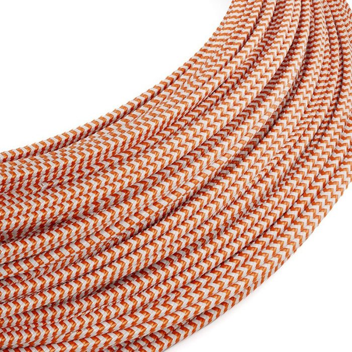 Slaboprúdový opletený kábel so vzorom CIK CAK "oranžová + biela" RZ15 - hodvábny