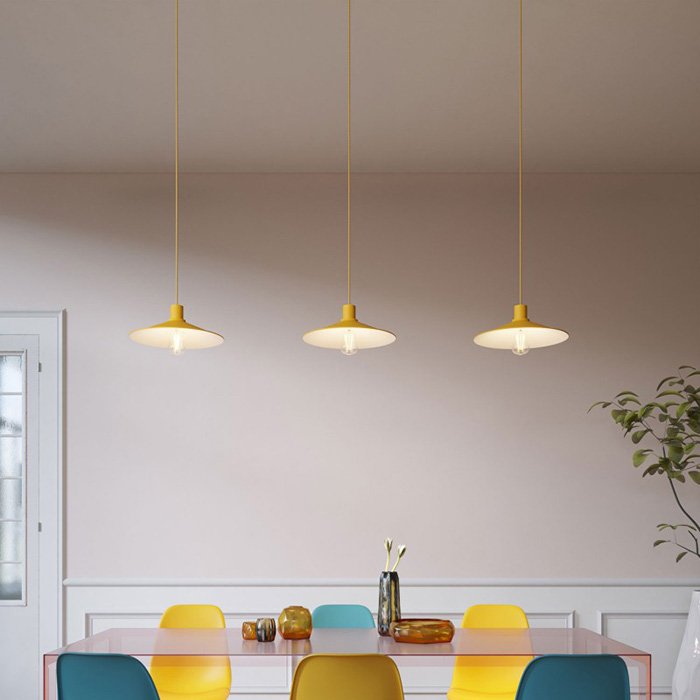 Existuje niekoľko možností použitia. Smaltované tienidlo Swing-M môžete použiť na renováciu existujúcej lampy alebo lustra a dať mu nový vzhľad, alebo ho použiť na vytvorenie úplne originálneho a personalizovaného osvetlenia. Môžete si tiež vybrať z našej #tablink#svitidla#kolekcie svietidiel## , ktorá obsahuje aj tienidlo. Kovové tienidlo sa dodáva bez objímky, preto odporúčame zakúpiť kompatibilné objímky E27 pre žiarovky s krúžkami na upevnenie tienidiel.