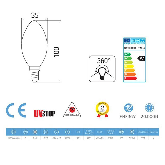 Skvelé technické spracovanie žiarovky od talianskych majstrov svetla zo spoločnosti Daylight Italia podčiarkuje jej jedinečnosť v každom detaile. Spoločne s dlhou životnosťou, ktorá niekoľkonásobne prevyšuje hodnoty klasických žiaroviek dokáže v mnohých prípadoch ospravedlniť vyššiu obstarávaciu cenu.