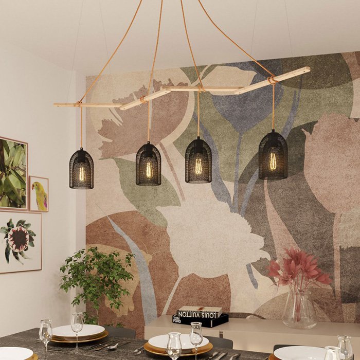 - Estetický prvok - závesná konštrukcia nechá vyniknúť ako prívodný kábel, tak aj samotný svetelný zdroj, vďaka čomu stáva nielen praktickým, ale aj estetickým prvkom, ktorý podčiarkuje design svietidla.
