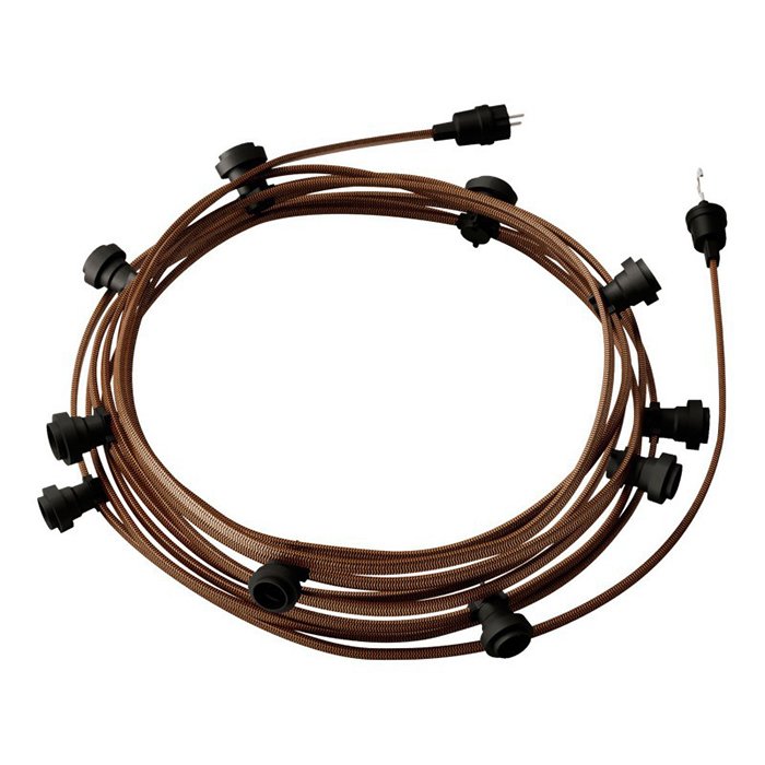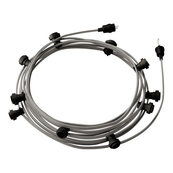 Svetelná reťaz E27 zostavená 12,5m s desiatimi čiernymi objímkami IP44