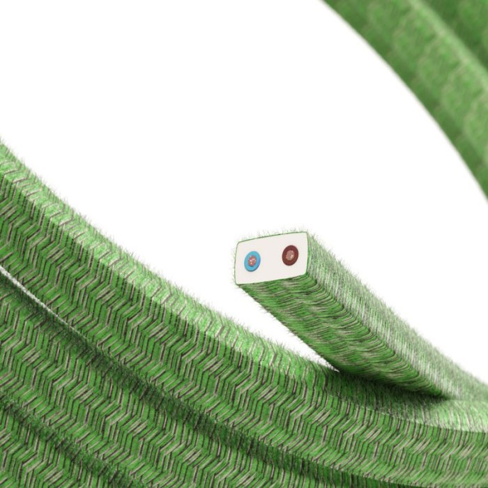 Zelený plochý látkový kábel pre vonkajšie či interiérové použitie 2x1,5 mm CottonRixet CX08 Made in Italy, spĺňa všetky platné európske normy a bezpečnostné smernice. Vďaka certifikácii CE predstavuje spoľahlivú voľbu pre elektroinštalácie, kde je bezpečnosť na prvom mieste. Jeho UV odolný povrch zaručuje farebnú stálosť aj pri dlhodobom vystavení slnečnému žiareniu, zatiaľ čo široký rozsah prevádzkových teplôt od –25 °C do +60 °C umožňuje použitie bez straty výkonu či estetiky.