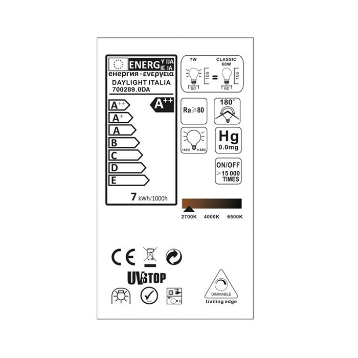 Kvalitu, efektivitu prevádzky a dlhodobú životnosť cez 15 000 hodín garantuje svetovo rešpektovaný výrobca žiaroviek DayLight Italia. Precízne technické spracovanie so zameraním na každý detail opálovej žiarovky je to, čím táto spoločnosť dosiahla významný podiel na trhu so svetelnými zdrojmi. Kvalitná opálová žiarovka s technickými vlastnosťami ako: No Flickering, IC Driver Design, COB LED Chip, (Ra) CRI80 dokáže v mnohých prípadoch ospravedlniť vyššie kúpne náklady.