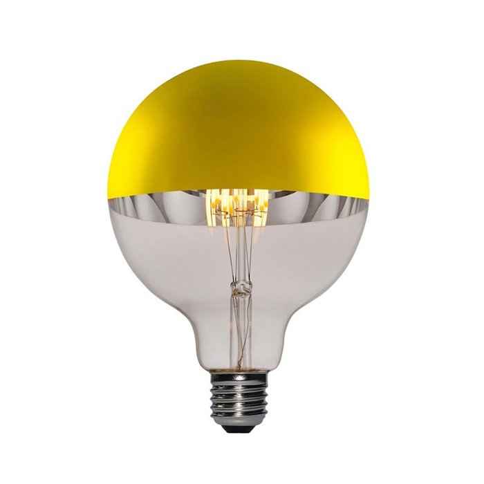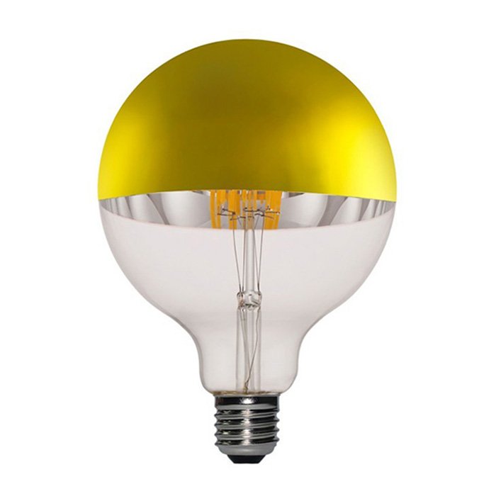 Stmievateľná žiarovka so zrkadlovím vrchlíkom E27 závitu s produktovým označením Dome Gold s príkonom 7W je dekoratívny a energeticky efektívny svetlný zdroj. Vzhľadom k obľúbenému tvaru mliečnej sklenenej banky G125 (Globe - v najširšej časti Ø 125mm) je skvelou alternatívou do všetkých bežných svetiel s objímkou E27. To, čo robí žiarivku Dome Gold mimoriadnym prvkom svetelnej dekorácie je strieborný zrkadlový vrchlík. Zatienený vrchol žiarovky spôsobuje, že produkované svetlo preniká do prestoru iba skrz číry sklenený obvod žiarovky. Stmievateľná žiarovka G125 s nesmerovým vyžarovaním svetla slúži pre neoslňujúce svetelné efekty a má svetelné charakteristiky: