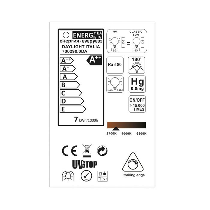 Kvalitu, efektivitu prevádzky a dlhodobú životnosť cez 15 000 hodín garantuje svetovo rešpektovaný výrobca žiaroviek DayLight Italia. Precízne technické spracovanie so zameraním na každý detail opálovej žiarovky je to, čím táto spoločnosť dosiahla významný podiel na trhu so svetelnými zdrojmi. Kvalitná opálová žiarovka s technickými vlastnosťami ako: No Flickering, IC Driver Design, COB LED Chip, (Ra) CRI80 dokáže v mnohých prípadoch ospravedlniť vyššie kúpne náklady.