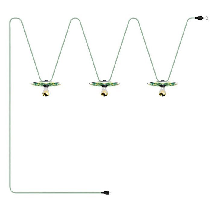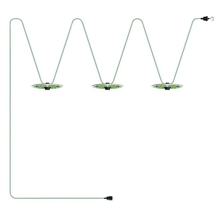 Prenosná vonkajšia svetelná reťaz na žiarovky s pripojením do zásuvky Lumet Maioliche IP44 je vyrobená z termoplastových komponentov. Pribalený vonkajší textilný kábel je možné v prípade potreby upraviť na požadovanú dĺžku. Originalitu a hravosť mu prepožičiava aj tienidlo Maioliche s ø 24cm.