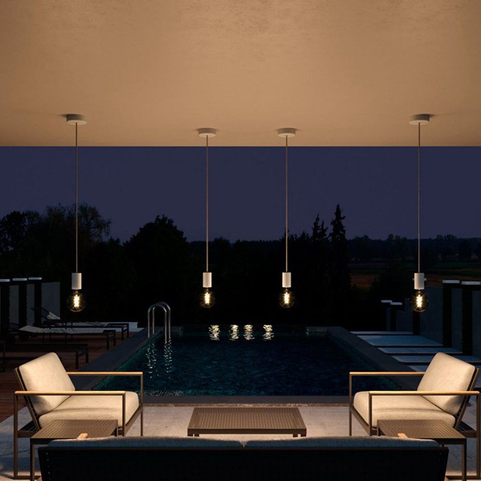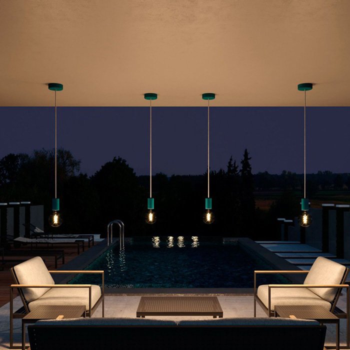 Vonkajšia závesná objímka na žiarovku E27 EIVA ELEGANT IP65 patrí medzi do kolekcie fascinujúcich vonkajších svietidiel a lustrov systému EIVA. Vonkajší luster na žiarovku vyniká mimoriadne kvalitným spracovaním a materiálmi, ktoré prešli dôkladnou selekciou. Našim cieľom bolo jednoducho stvoriť dokonalé vonkajšie závesné svietidlo na žiarovku, ktoré vďaka farebným kombináciám zaujme všetky kreatívne duše. Detailing vonkajšie závesné objímky dopĺňajú plastové a silikónové vodeodolné komponenty, vrátane vonkajšieho textilného kábla v dĺžke 1,5m. Kábel vonkajšieho svietidla je možné ľahko skrátiť na požadovanú dĺžku. Vonkajšia závesná objímka na žiarovku a všetky súvisiace komponenty nesú známky vysokej technickej kvality a mimoriadneho dizajnu pre dokonalý výsledok. Vyrobené sú MADE IN ITALY.