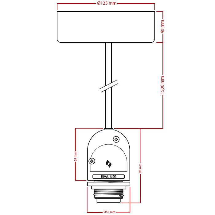 Vonkajšia závesná objímka na žiarovku s káblom 1,5m EIVA IP65