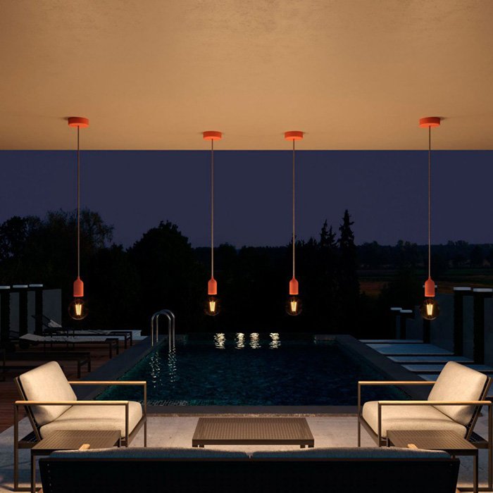 Vonkajšia závesná objímka na žiarovku E27 EIVA PASTEL IP65 patrí medzi do kolekcie fascinujúcich vonkajších svietidiel a lustrov systému EIVA. Vonkajší luster na žiarovku vyniká mimoriadne kvalitným spracovaním a materiálmi, ktoré prešli dôkladnou selekciou. Našim cieľom bolo jednoducho stvoriť dokonalé vonkajšie závesné svietidlo na žiarovku, ktoré vďaka pastelovým farebným kombináciám zaujme všetky kreatívne duše. Detailing vonkajšie závesné objímky dopĺňajú plastové a silikónové vodeodolné komponenty, vrátane vonkajšieho textilného kábla v dĺžke 1,5m. Kábel vonkajšieho svietidla je možné ľahko skrátiť na požadovanú dĺžku. Vonkajšia závesná objímka na žiarovku a všetky súvisiace komponenty nesú známky vysokej technickej kvality a mimoriadneho dizajnu pre dokonalý výsledok. Vyrobené sú MADE IN ITALY.