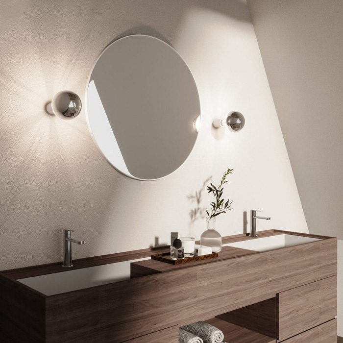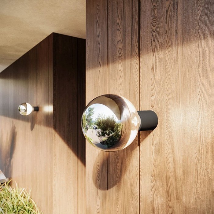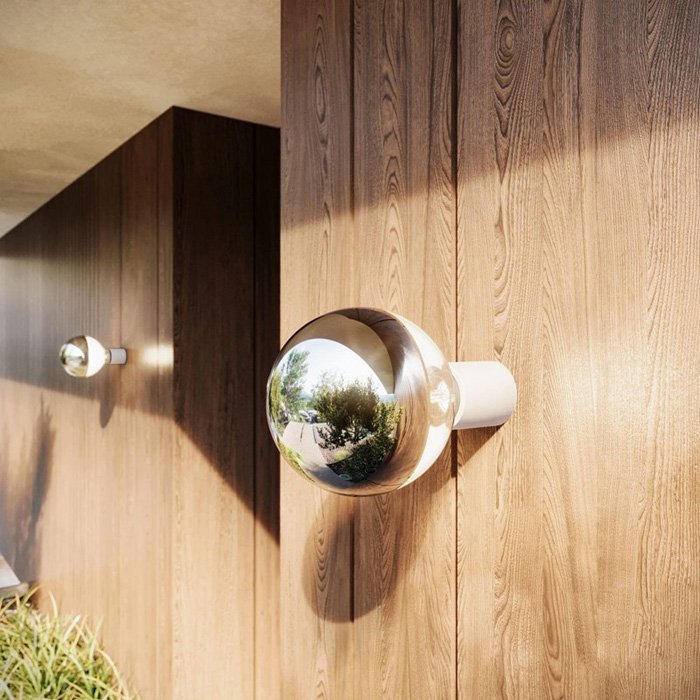 Toto svietidlo s aplikáciou a striebornou polguľovou žiarovkou obsahuje valcovú objímku, ktorá je k dispozícii v čiernom a bielom prevedení, a žiarovku z číreho skla so striebornou povrchovou úpravou kupoly, ktorá pôsobí jedinečným vizuálnym dojmom.