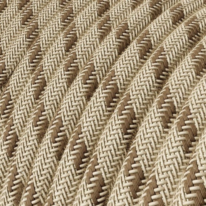 Vzorovaný retro látkový kábel 2x0,75 mm s produktovým označením DashedLine RD53 je určený pre pevné inštalácie v elektrických sieťach 230 V. Vhodný je hlavne pre dekoratívne interiérové svietidlá alebo svetelné sústavy, kde naplno vynikne jeho vzorované retro prevedenie a precízne zhotovenie a zároveň nie je vyžadovaný ochranný vodič (PE). Vďaka medeným lankovým vodičom v guľatom prevedení, dvojitej PVC izolácii a precíznemu spracovaniu ponúka kábel vysokú mieru bezpečnosti, flexibilitu a nadštandardnú mechanickú odolnosť s nosnosťou káblu pre zavesenie svietidla až 2,25 kg. Vzorovaný povrch s kombináciou materiálov Linen (ľan) a Cotton (bavlna) dodáva káblu mimoriadny vzhľad, vďaka ktorému sa stáva nie len funkčným, ale aj estetickým prvkom interiéru. Využite 2x0,75 mm vzorovaný retro kábel RD53 pre individuálnu či malosériovú výrobu originálnych svietidiel či osvetľovacích sústav s dôrazom na design a detail.