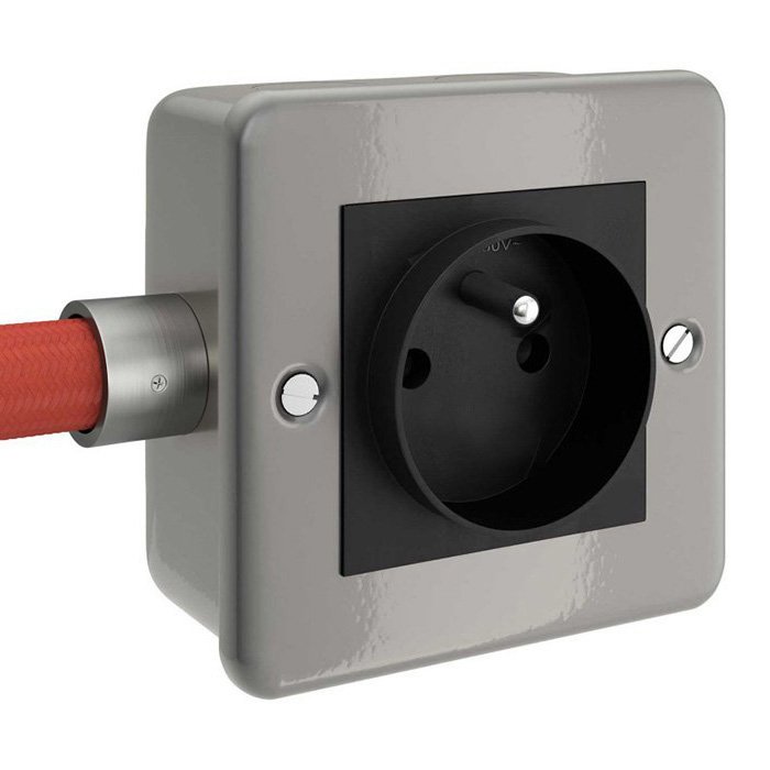 Kovová povrchová zásuvka ponúka flexibilné a praktické riešenie vhodné na pripojenie kompatibilnej #tablink#creative-tube#elektroinštalačnej trubice## zo všetkých 4 strán pomocou priechodky M20, ktorú nájdete v #tablink#nezapomente#montážnom príslušenstve##. Vďaka robustnému prevedeniu je zásuvka odolnou a spoľahlivou voľbou ako pre rezidenčné, tak aj komerčné priestory.Technicky je možné popísať zásuvku ako Typ E - Francúzsky systém.